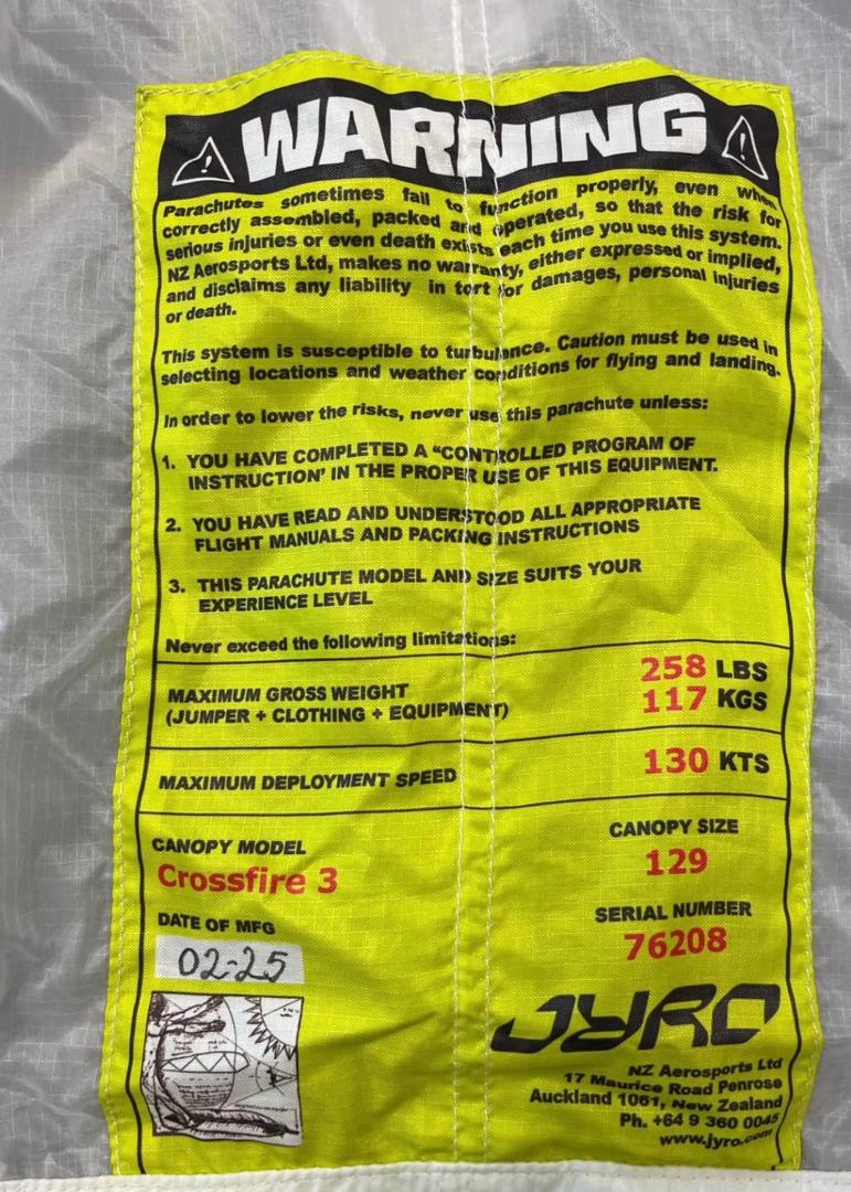 Understanding how a canopy behaves beyond basic flight is essential for informed ownership. While specifications provide structure, real value is revealed through dynamic performance. The Used CrossFire 3 129 Main Canopy DOM 2025 distinguishes itself through predictable energy management, controlled dive characteristics, and refined responsiveness that scales with pilot input.CrossFire 3 129 Main Canopy