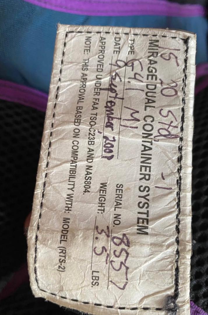 Despite its manufacture date, the reserve has seen no deployments, while remaining regularly repacked, ensuring continued airworthiness and compliance.